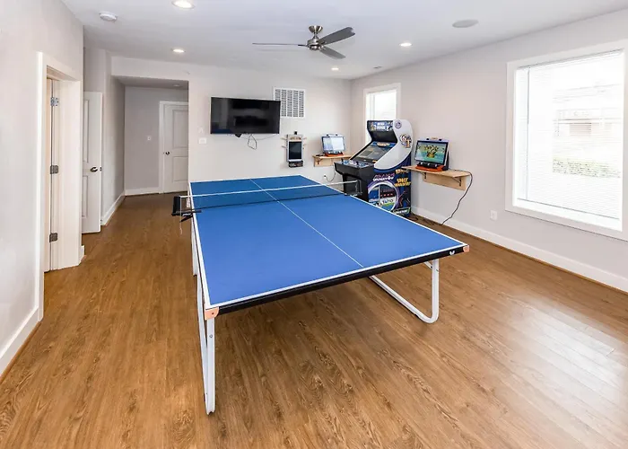 The beachfront Blue Horizon Villa is situated nearly a 5-minute walk from Sandbridge Beach and provides a Jacuzzi and an indoor pool for a relaxing stay. The 12-bedroom villa features opportunities for ping-pong in the area, close to Sandbridge Seaside Market.